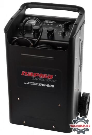 Пуско-зарядное устройство ПАРМА УПЗ-600 02.008.00009 — это высокопроизводительный аппарат, который активно используется в крупных автомастерских и станциях технического обслуживания. Имеет два режима зарядки/запуска аккумулятора — быстрый и медленный, которые оператор выбирает вручную, посредством специальных переключателей. Подходит для свинцово-кислотных батарей ёмкостью от 60 до 1000 Ач.