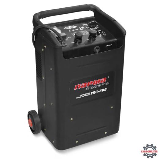 Пуско-зарядное устройство 12/24 В Парма УПЗ- 800 02.008.00011 предназначается для запуска двигателя с севшим аккумулятором, а также для восстановления заряда свинцово-кислотной АКБ. Опоры в основании конструкции обеспечивают устойчивость на поверхности. Прочный корпус эффективно защищает внутренние элементы от механических повреждений. Модель оснащается переключателями, стрелочным амперметром, что дает возможность визуально контролировать основные рабочие параметры.
